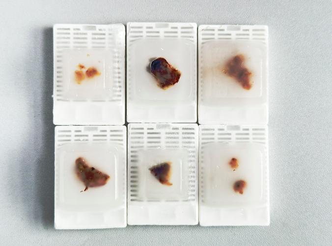 4、取材切面要平整,厚度不易超過2mm,否則脫水效果不能保證,